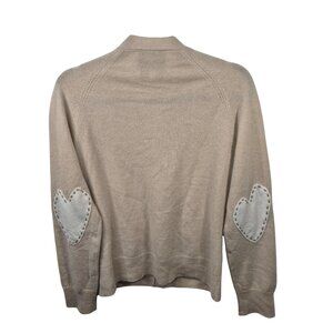 Kerri Rosenthal Sweater Womens S Beige 100% Cashmere Cardigan Knit Long Sleeve Heart Patchwork