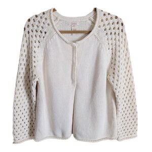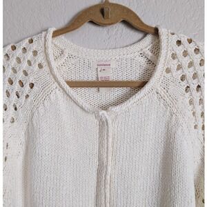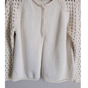 Sundance Cottage Romantic White Rolled Neck Crochet Sleeves Cardigan