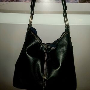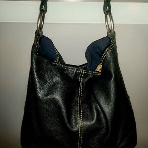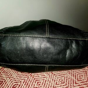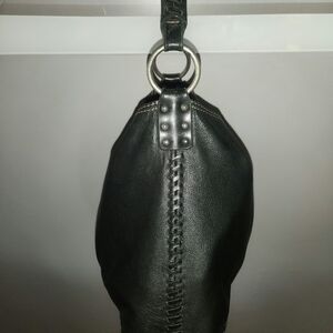 LUCKY BRAND Whipstitch Slouchy Black Leather Hobo Tote Beautiful soft large size Genuin Leather Hobo Tote with whipstitch detail up both sides of the bag. 100% genuine leather. Handle has a nice stitch detail. Hidden magnetic top closure. Interior fully lined in a black cotton weave fabric with zip pocket on back wall & two slips pockets on front wall. APPOXIMATE MEASUREMENTS: 14" wide X 15" high X 3-4" deep Single hand strap drop 9" (to top of bag) Black leather whipstitch single handle. Can be carried on the arm or shoulder~