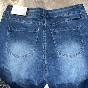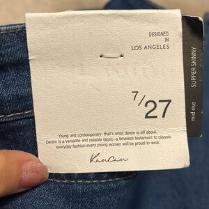 These are brand new with original tags. KanCan mid rise super skinny jeans in a medium to dark wash. Some of my pictures look more blue because I used the flash on some of them but they are a really nice medium to dark wash, non-distressed jeans that are called super skinny, but they just look like a regular pair of jeans to me. Please see photos for measurements. If you haven’t tried KanCan jeans before you will love these. Super comfortable. The inseam on these is approximately 28 1/2.
