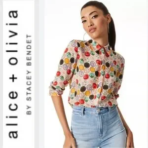 Alice + Olivia Willa “Dinner Party” Print Silk Blouse S