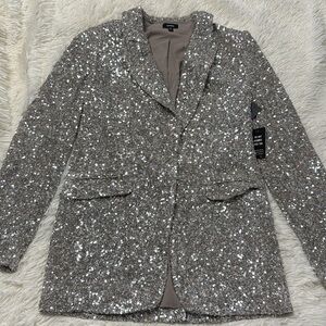 Express Sequin One Button Boyfriend Blazer