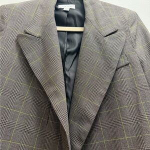 Worn less than 10x! I got a new job recently and don’t need so many blazers any more! Chic with checkered pattern. Ideal for versatile styling. Size 2 but could fit up to a size 8, oversized for sure!