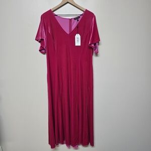 NWT Universal Standard Hot Pink Velvet V-Neck Dress Size 14-16