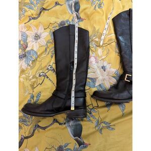 Miz Mooz Women’s 7.5 Black Leather Faux Fur Lined Tall Mid Calf Heeled Boots