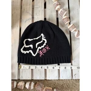 Vintage Y2K Fox Racing Black Pink Beanie Hat