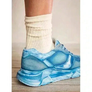 Your white sneakers get a creative remix with this pair, featured in a classic trainer silhouette with leather uppers and a bumped-up rubber sole, all in a washed dye to give it that unique DIY look.