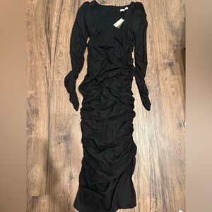 NWT! Banana Republic Black Crepe Ruched Midi Dress 🍄🟫💫