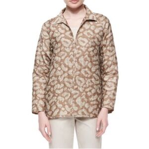 Lafayette 148 New York • Animal Print Jacquard Zip Front Jacket Large Neutral