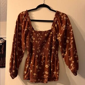 Madewell Floral Smocked Rust Blouse