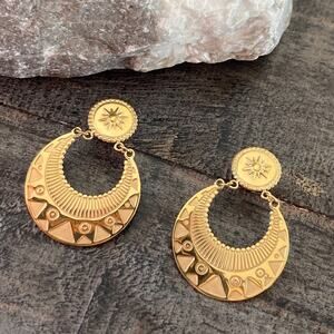 NEW Gold Textured Medallion Dangle Earrings