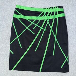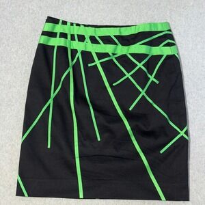 Carlisle Black Green Geometric Tape Pencil Skirt Women Size 4 Cotton Stretch