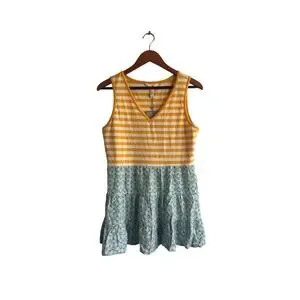 Matilda Jane Womens Yellow Striped Floral Tiered Tunic Top Sleeveless Medium NWT