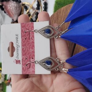 Charming Charlie Royal Blue Feather Earrings E1027
