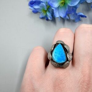 Vintage Navajo Silver and Blue Turquoise Teardrop Ring Size 7