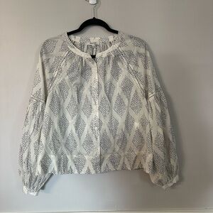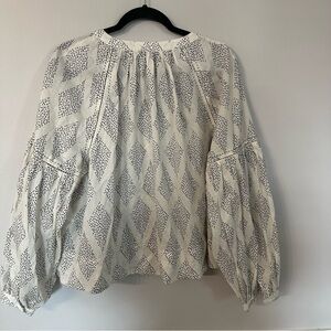 Madewell Shirred Balloon-Sleeve Top in Geometric Print in Lighthouse Sz XL NWT