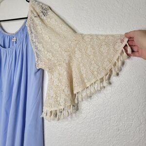 Southern Stitch Blue Crochet Lace Bell Sleeve Tassel Off the Shoulder Dress XXXL