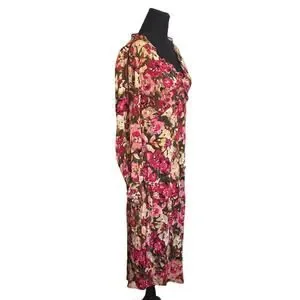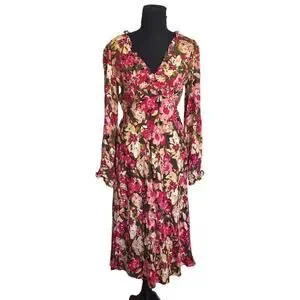 floral midi dress, long sleeve dress, ruffle cuff dress, romantic cottagecore dress, boho floral dress, winter wonderbloom, holiday dress, NWT dress, boutique style, church outfit, brunch outfit, wedding guest dress