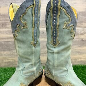 Gianni Bini Women - Size 7.5M - Blue/Green Suede Studded Snip Toe Cowboy Boots