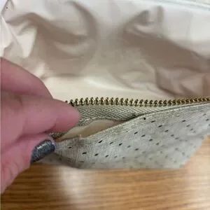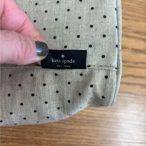 Chic out to lunch bag, tan with black polka dots by Kate Spade. Ideal for everyday use. This bag is perfect for taking your lunch to work! Please see the last few photos as there is a small opening separating the lining from the bag. This can easily be restitched and is priced accordingly. Any reasonable offer will be accepted so please just ask. Thank you for shopping in my closet!