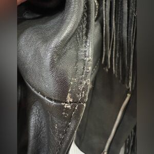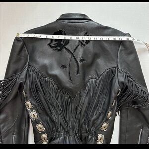 VTG Women’s Pro-Sports Leather Moto Jacket Fringe Conchos Roses Cinched Waist