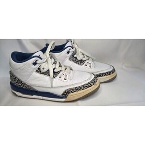 Air Jordan 3 Retro GS True Blue 398614‑104 Size 7Y – Youth size 7 grade school Jordan 3 Retro in the classic white/true blue colorway. A retro from 2011 with the iconic elephant print and visible Air cushioning; sought-after by collectors and fans.