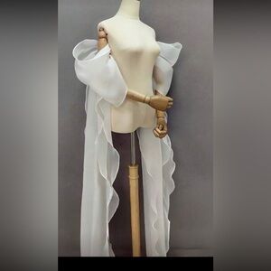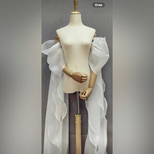 Beautiful sheer shawl sleeves in white. Perfect for adding elegance and coverage of arms.