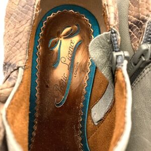 Elevate your ensemble with the chic Poetic Licence Encoure Bootie, a synthesis of sophistication and comfort. Crafted with a striking leather upper in a tasteful blue gray hue, these booties feature a bold snakeskin print platform with a charming bow accent that adds a touch of femininity. The round-toe design ensures a comfortable fit, making them an ideal choice for various occasions, from a day at the office to an evening out. With a versatile cone heel standing over 4 inches tall, these booties provide an alluring lift without compromising stability. The convenient back zipper closure ensures ease of wear while the synthetic insole and outsole offer durability and everyday comfort. Whether you're traversing the urban jungle or attending a casual gathering, these booties will be your go-to footwear for a chic, put-together look.
