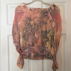 Elevate your style with this chic multicolor snake print top. Perfect for any occasion, this top combines vibrant hues with a trendy design.Netted sleeves, very stretchy. one size.