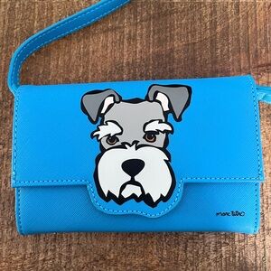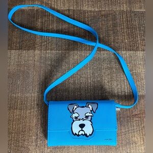 Stylish bright blue crossbody bag featuring a playful schnauzer design. Perfect for adding a fun touch to any outfit. In like new condition, no stains or flaws noticed. Please see pics for details.