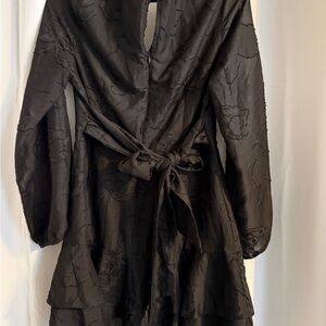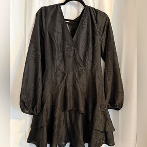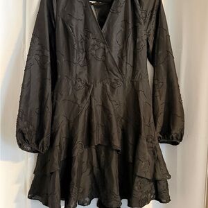 Black Textured Wrap Mini Dress NOLA Boutique Tiered Hem L