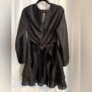 New without tags black boutique dress from New Orleans. Lightweight textured burnout fabric with subtle tonal floral detail throughout.