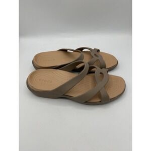 Crocs Sandals Tan & Brown Womens Strappy Slip On Slides Size W9