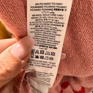 Adorable pink sweater featuring a cute red bird design with white accents. Cozy warm, and great quality. Well cared and worn for only one season.