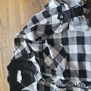 EUC Craft + Flow Youth button up shirt. Elevate your casual wardrobe with this classic black and white plaid shirt. Perfect for everyday wear, it offers a comfortable fit and timeless style.