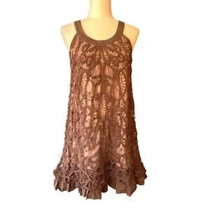 Modcloth RYU Brown Crochet Sleeveless Dress Boho Chic Fairycore SZ L