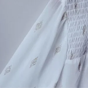 Excellent condition like new Size M Long sleeve. Smocked style upper