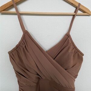 Elliatt Pippa Dress, Nude/Mocha Size M Ruched Bodycon Midi Dress