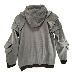 Yisilier Hooded Pullover Sweatshirt Gray Unique Layered Sleeves Pocket L Mens