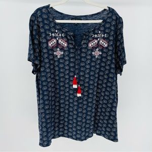 Lane Bryant Navy Embroidered Top, Tassel Neckline, Modal Blend, Size 18/20