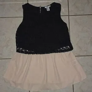 BAR III Elegant Black Lace Top with Cream Skirt Dress