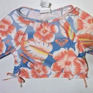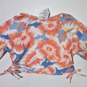 NWT. Roxy floral Long-sleeve cropped Rashguard. Size 7. UPF 50 sun protection.