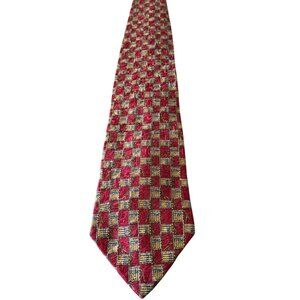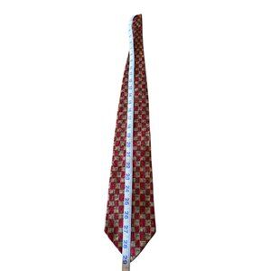 Fumagalli ITALY 100% Silk Tie Red Gold Geometric Check Sartorial Luxury