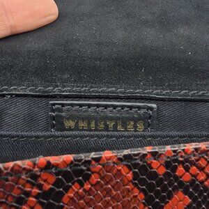 Brand Detailing: Gold foil stamped "WHISTLES" leather logo patch inside.