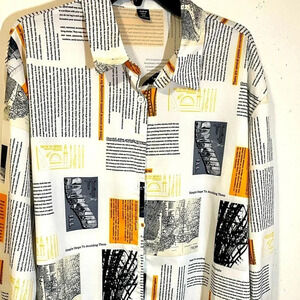 Allover Print Blouse eye catching add a pop to your wardrobe. Flat collar long sleeve button up front perfect for casual or dressy occasions soft and comfortable for all day wear.