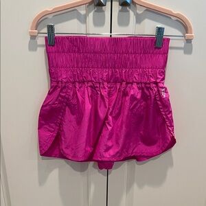 Vibrant pink athletic shorts. Elastic waistband. Lightweight and comfortable. Really cute breathable and wet, sweating free people move in short have this great high waist that makes you look even slimmer great collar. It’s actually like a fuchsia pink on the first picture that would be a true color and being styled this summer with these great shorts.