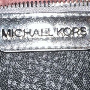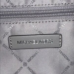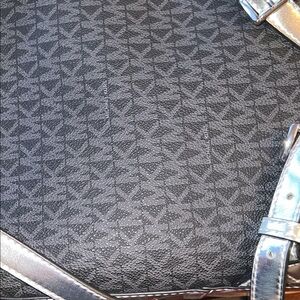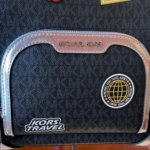 Stylish Michael Kors backpack. Features black body with silver accents. Embellished with fun patches. Perfect for travel or daily use.