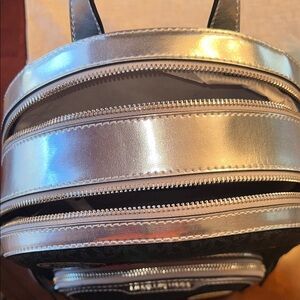 Michael Kors Black and Silver Backpack Med zip leather special NYC edition NWT
