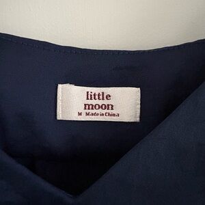 Aritzia Little Moon Lover Satin Camisole in the colour Midnight Blue. Strappy v-neck babydoll camisole with a flounced peplum hem and darting at the bust for shaping. Made with a lightweight, drapey satin fabric. Only worn once and in excellent condition! Sold out online and in-stores.