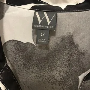 Worthington Monochrome Floral Long Sleeve Dress